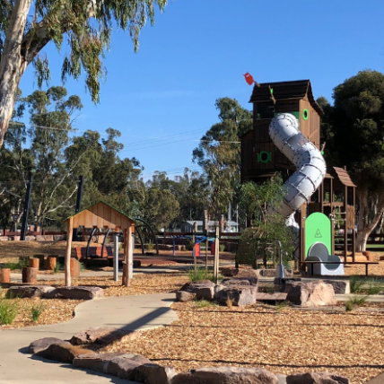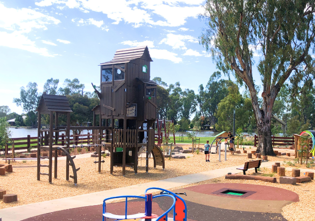 The playground celebrates the town’s strong links to Gunbower Creek and its agricultural heritage while providing an inclusive destination for families of all abilities.