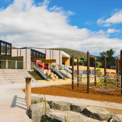 This social play structure, part of Lappset’s Nature Play range, offers a variety of climbing challenges and a hammock-like lounging area. The design caters to all abilities, with two nets featuring tighter mesh for easier climbing and resting. The eight triangular nets provide different climbing levels, ranging from 350mm to 1550mm, while some posts even have branch-like structures for added excitement. The Fairy’s Circus is a beloved feature of the Dominic College expansion, encouraging students to explore and play together.