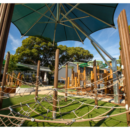 The Fairy’s Circus from our partner Lappset’s Nature Play range was chosen for this project. The Fairy Circus is a beautiful and inclusive nature play product which offers a variety of climbing challenges, as well as a hammock type lounging area. The design caters to all abilities, with two nets featuring tighter mesh for easier climbing and resting. The eight triangular nets provide different climbing levels, ranging from 350mm to 1550mm, while some posts even have “grown” branches for added climbing excitement.