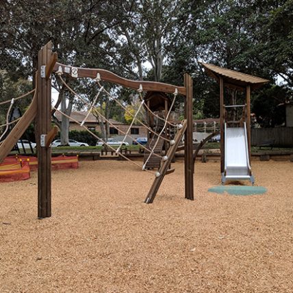 Kimberley Playground is a popular neighbourhood park surrounded by large shady trees. The nature inspired design of Lappset Flora playground equipment blends with the environment and was the ideal choice for the recent upgrade by Lane Cove Council. The new playspace features a Goblin’s Forest with slide and Goblin’s track, Troll’s climbing track, Froggy spinner and two swings, including a birds nest swing. This wonderful new design provides creative and challenging play options for a variety of age groups.