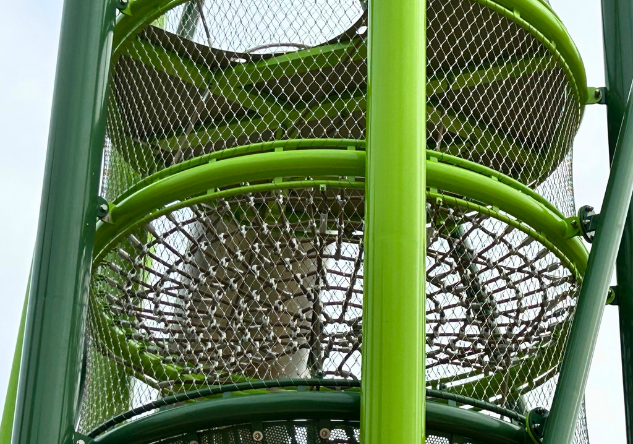 The Grass Art Tower embraces inclusivity, offering a dedicated path and a 1.5-meter junior slide to welcome even the youngest explorers. As children climb the tower, they encounter progressive challenges – multiple levels and net challenges that gradually increase in difficulty to cater to various skill levels. Spacious platforms at each slide entry point allow multiple children to enjoy the thrills simultaneously. Net elements woven into intermediary platforms add a layer of dynamic play, fostering balance and coordination in a way that’s both engaging and safe.