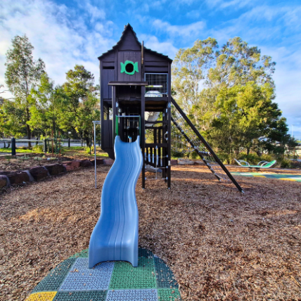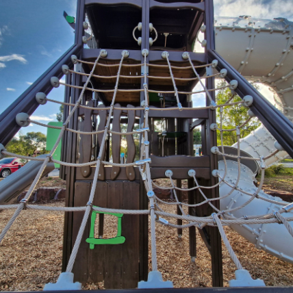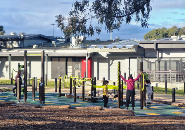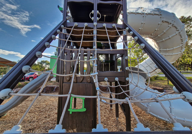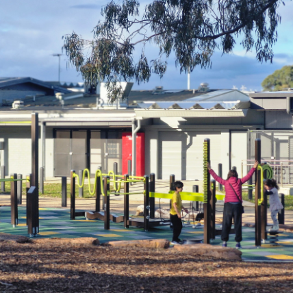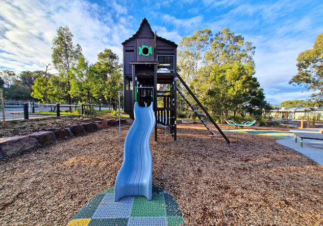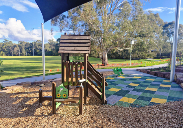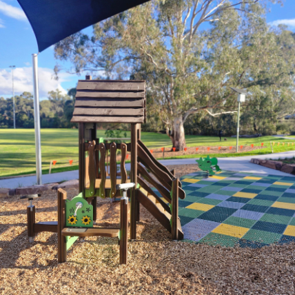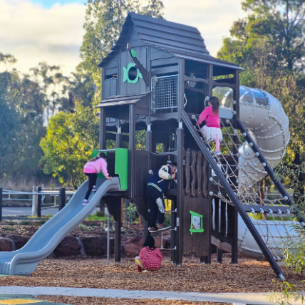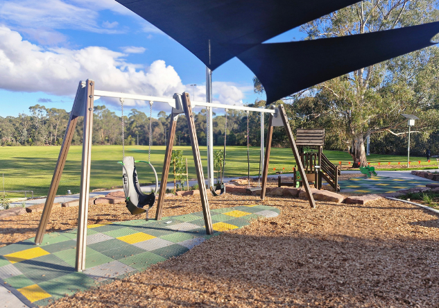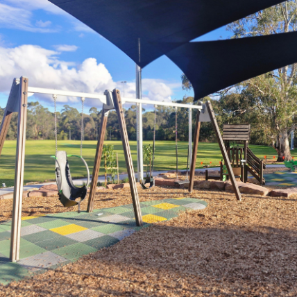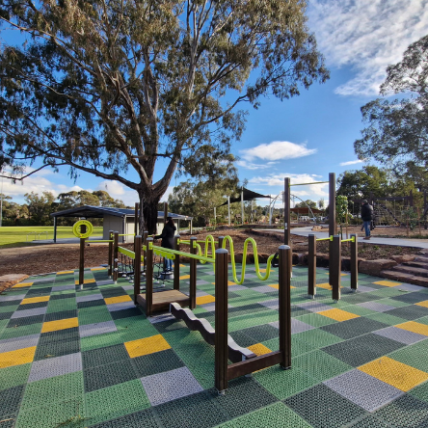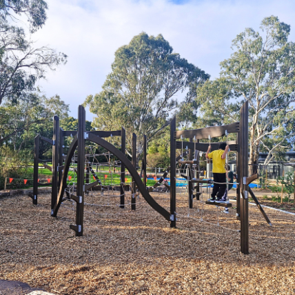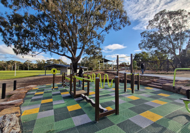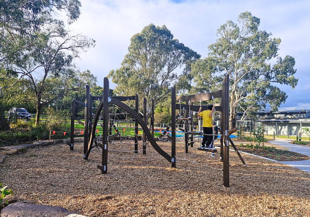 The newly completed district-level playspace at Mulgrave Reserve, delivered in collaboration with Monash Council and ACLA, features a considered mix of custom and modified equipment designed for all ages and abilities.