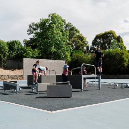 The Norwood Hill Recreation Reserve has recently undergone a significant revitalisation in collaboration with Mount Alexander Shire Council and Pollen Studios, with a focus on providing a wider range of recreation options for the Castlemaine community. One exciting addition is a dedicated parkour training area.