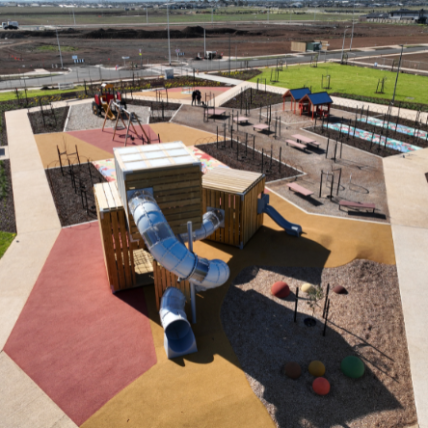 Alongside the tower, the playspace features an apple green inclusive wheelchair carousel from partners Recreology, ensuring universal access and broad play value. Delivered in collaboration with Risland and GbLA, the project reflects a balance of creativity, practicality, and community relevance.