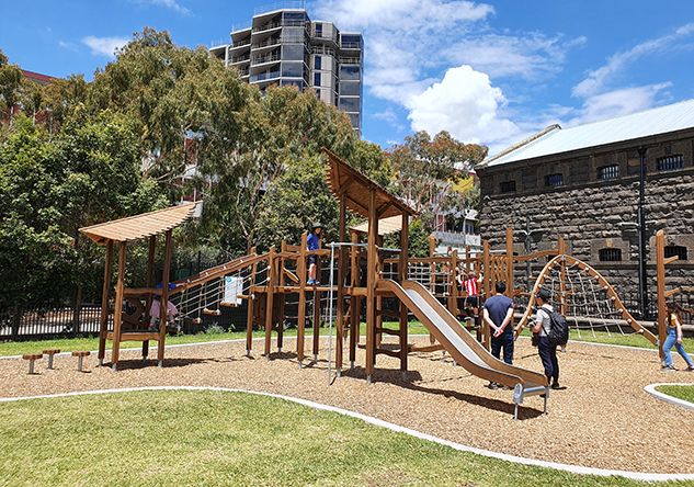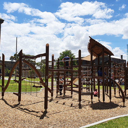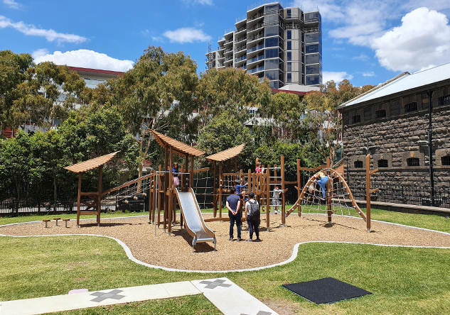 To further enhance their significant transformation of the iconic former Pentridge Prison in Melbourne’s inner-North, our client Shayher Group required a structure that provided play value for a broad range of users and was understated and sympathetic to the surrounding history and landscape.