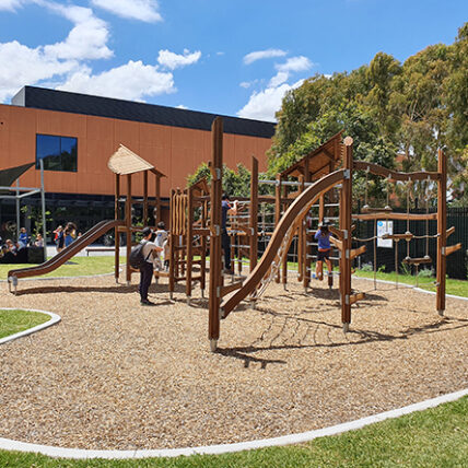 The Custom Flora Adventure Track from our partner Lappset was the perfect fit with its neutral brown and beige tones and soft natural lines that nestle into the space and do not overpower the surrounding infamous bluestone backdrop.